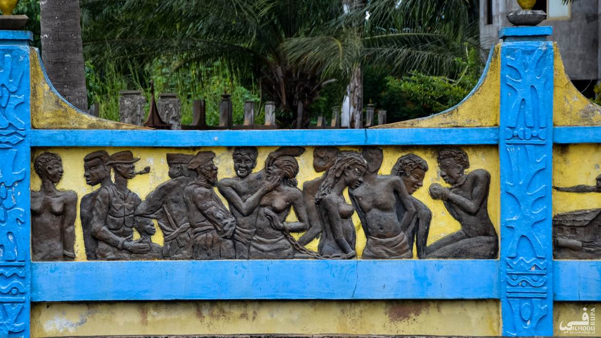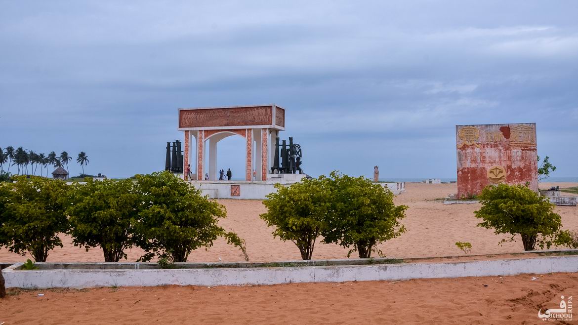 We wspomnianym Ouiudah, zanim niewolnicy zostawali ładowani na statki musieli przejść czterokilometrowy odcinek z fortu do plaży, na której obecnie znajduje się monument nazywany Bramą Bez Powrotu. Dziś zastaliśmy tam pomnik. Tak zwana Droga Niewolników ma swój początek w portugalskim forcie, będącym obecnie muzeum.