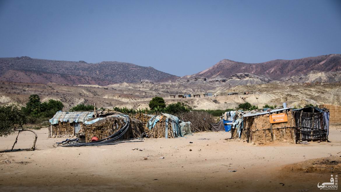 Proste chałupy budowane z palonej cegły lub gliny, co „lepsze” z blachy falistej. Niemal przy każdym domu znajduje się flaga.
