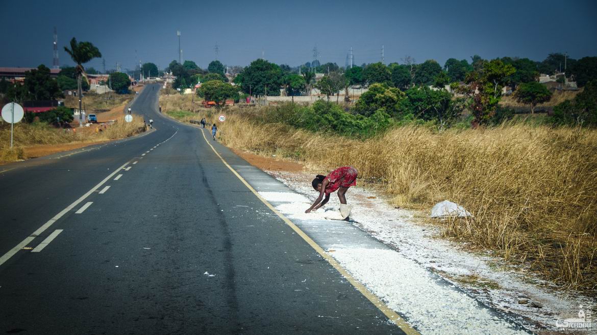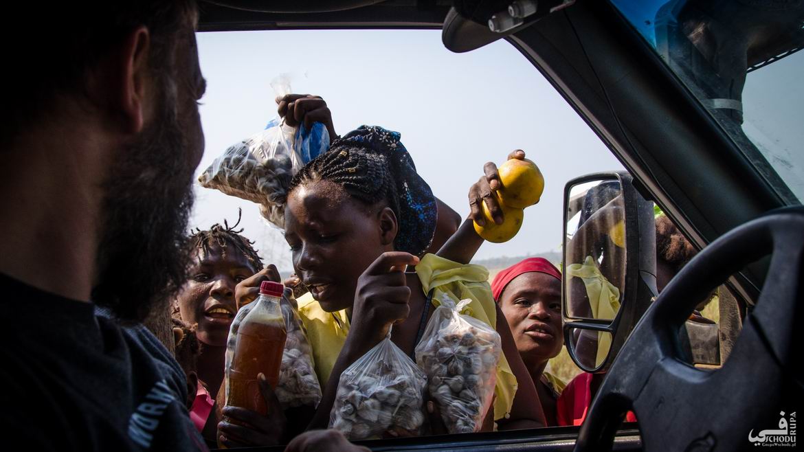 Mnóstwo motocyklistów dzielnie radzących sobie z dziurawymi drogami. Wypalanie węgla drzewnego, łowienie ryb, zbieranie owoców baobabu, czesanie, dorabianie jako kierowca busa, handlowanie upolowanym w buszu zwierzem to sposoby na przetrwanie codzienności.